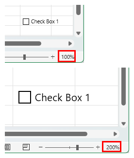 I have tried changing the properties, size and font of the text sizes. None of it is able to change the size of the check box. Please do share if someone has another method for it.