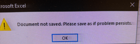 Occasionally when saving there is an error that says, "Document not Saved. Please save as if problem persists". That last part, "please save as if problem persists", does not make sense, is using bad grammar, and doesn't sound like any official Microsoft error message. So is it possible that my version of Excel has been hacked?