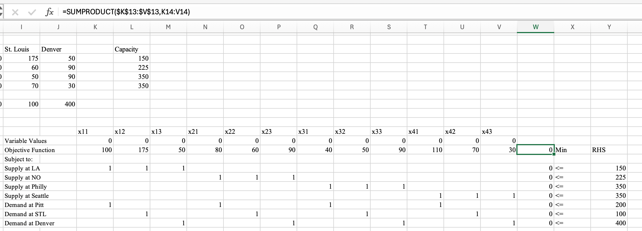 The minimum solution of your SumProduct is Zero, so it appears to me to be correct.