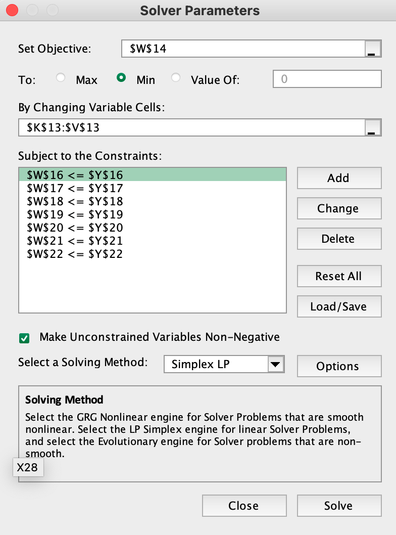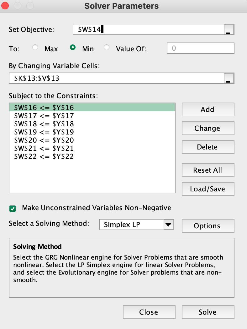Your Row 14 are all blank! So, the objective will always be zero.