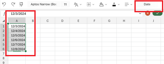- After selecting, you can fill in the information in the selected cell in the format of mm/dd/yyy to see if it can be filled in successfully.