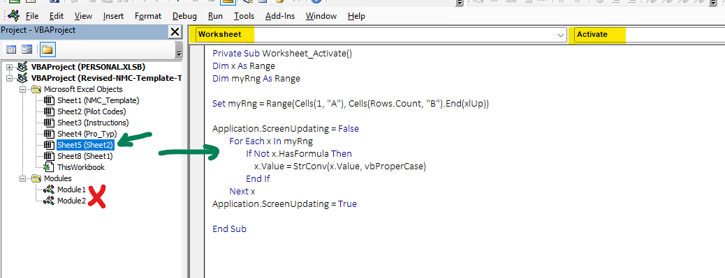 You also need to make sure this macro is firing with the on active event by placing it in the proper worksheet (NOT MODULE) as described above. To test for this, the below code will give you a popup when it runs. If you don't see it, it's not running. Once you do see it, delete it out of procedure