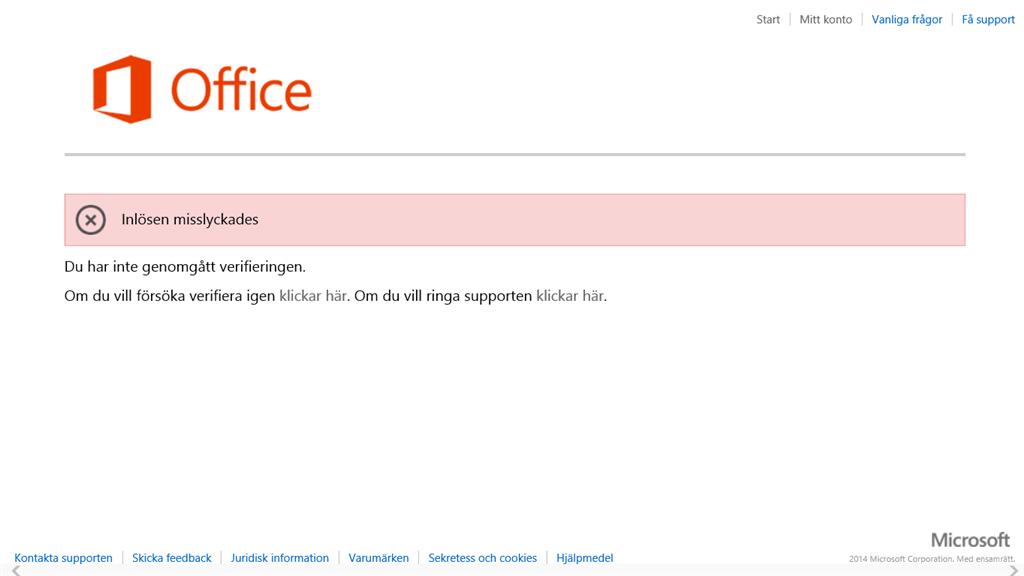 instead it almost instantly takes me directly back to the office setup page where I am supposed to choose my language. I click next and it attempts to activate my office product but I receive this error instead (in Swedish):
