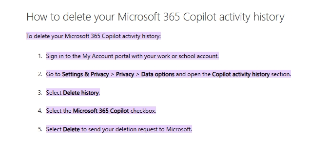 Delete your Microsoft 365 Copilot activity history - Microsoft Support