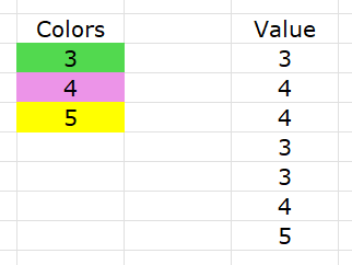I'm working on a project that requires me to have specific colors for certain values. I'm curious as to how I would set up conditional formatting to add the color scale I've attached to the cells I need formatted. Using the normal "Format cells based on values" option doesn't allow me to have more than three colors.