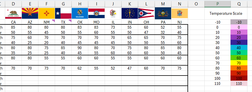 This is a project for a meteorology class where we have to create a month long record of temperature data for the following states.