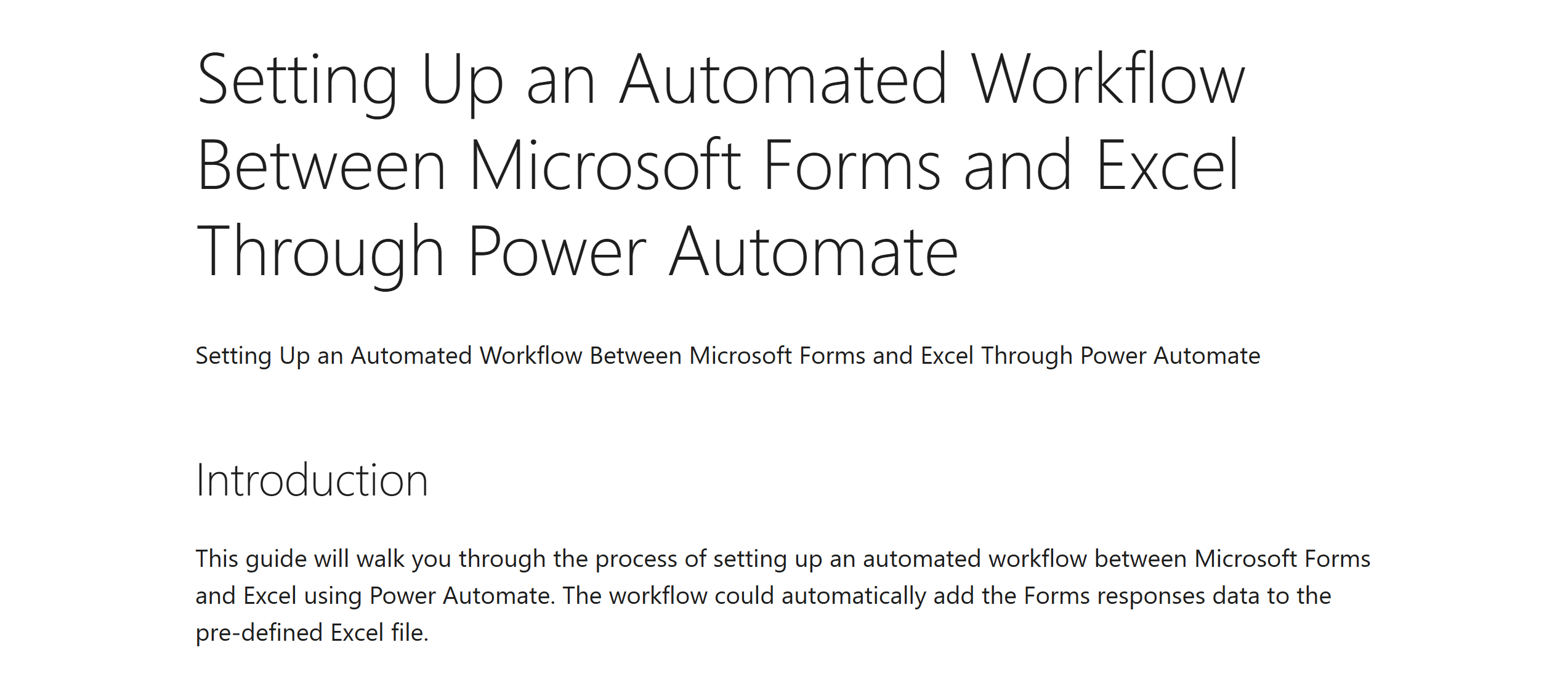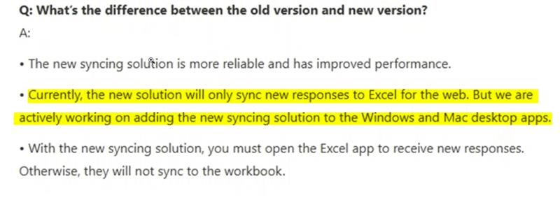 You can learn more about the Power Automate workaround by following the steps in this article: Setting Up an Automated Workflow Between Microsoft Forms and Excel Through Power Automate - Microsoft Support