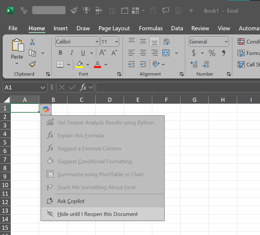 Kindly ask is there any option to disable the floating Copilot icon in Excel?