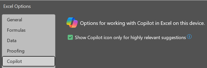 Sincerely I've been driven MAD by this floating icon. As normal users, we don't really need to use Copilot EVERYWHERE in the Excel. Will it be possible that in the future the team can work out a better way to toggle the Copilot function instead of keeping the icon floating?