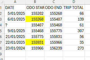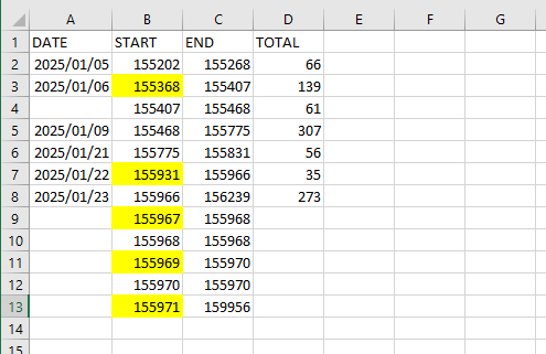 Select your dataset range, for example, B3:B500. Please note that you should not start from B2 because the first row is the header row, and B2 does not have a "top-right" cell to compare with. B500 is a simulated endpoint for a larger dataset. If your dataset exceeds 5000 rows, you can extend it to B1000, B2000, and so on.