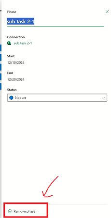 In the roadmap, click on the subtask, in the Phase dialog box, click "Open details". In the Phase pane, click "Remove phase".