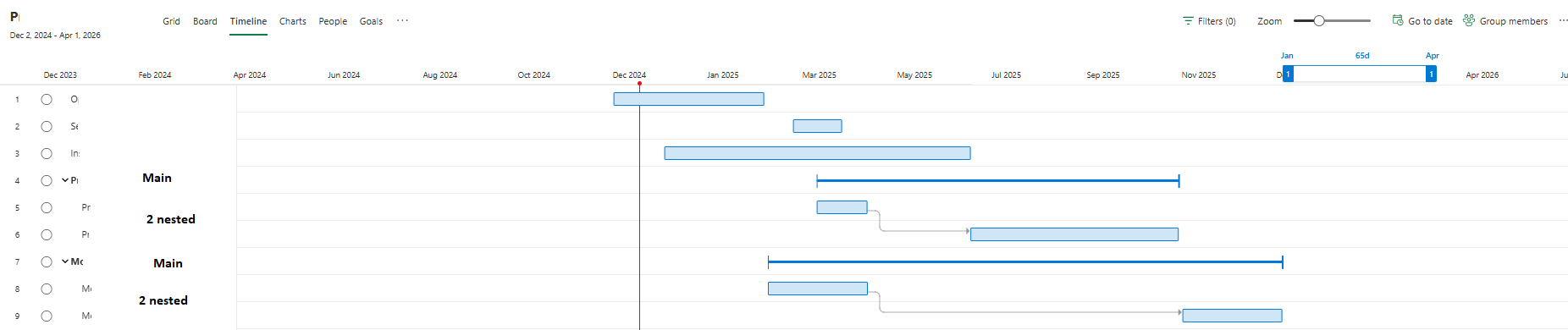 Click on the row> Details> Update items> check the related task options to show these subtasks again. After a few attempts, the main tasks and subtasks should be in the expected order.