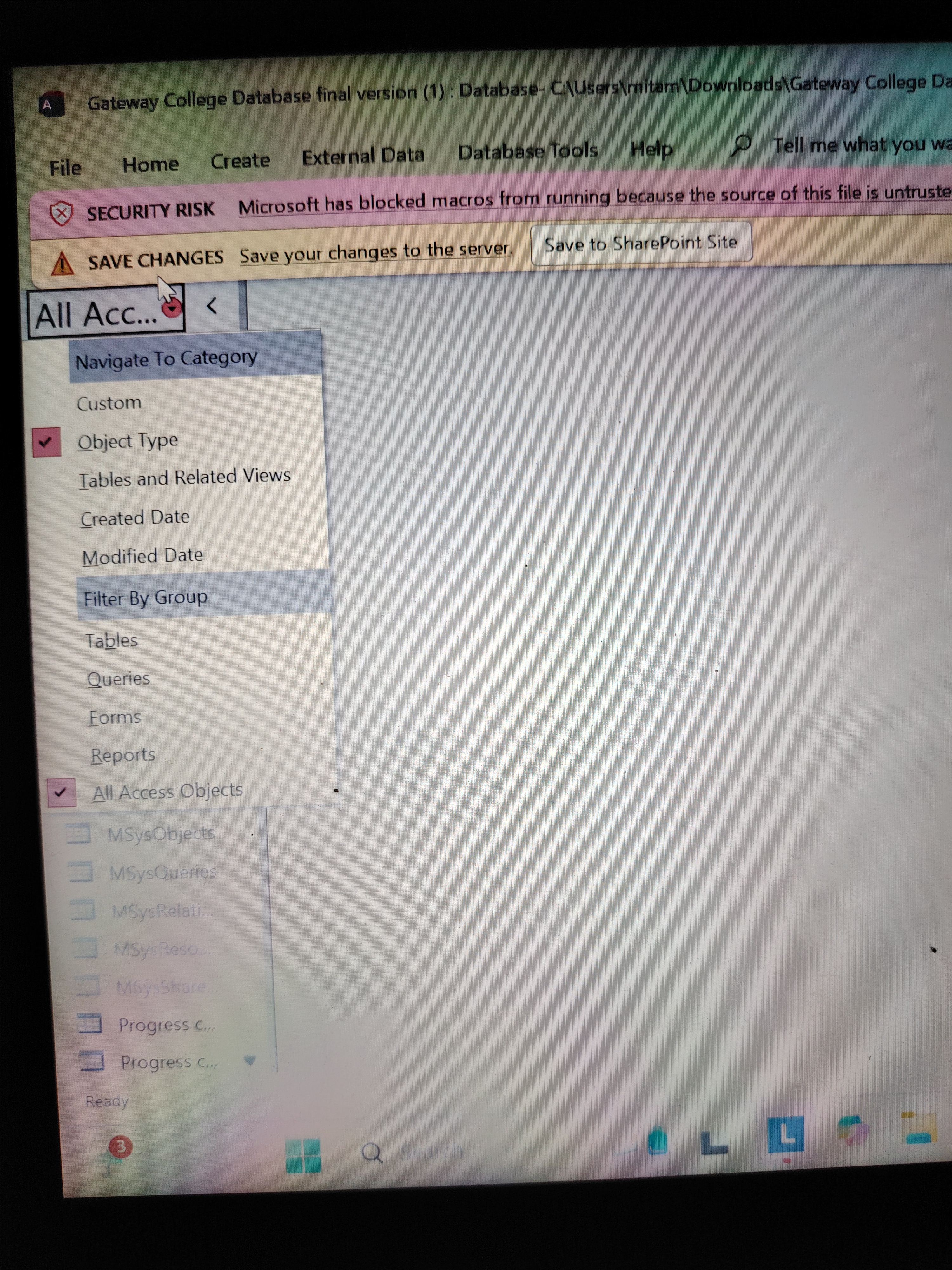 Also for us to help, you need to provide more information. What exactly are you doing and what happens when you do it? If you get an error message show the exact message. If there is any code involved, post the code. Instead of taking a photo of your screen, use the SNIP tool that comes with Windows to take screenshots. If posting code, copy and paste the code rather than a screenshot or photo. If you have a question about a query, post the SQL statement for the query.