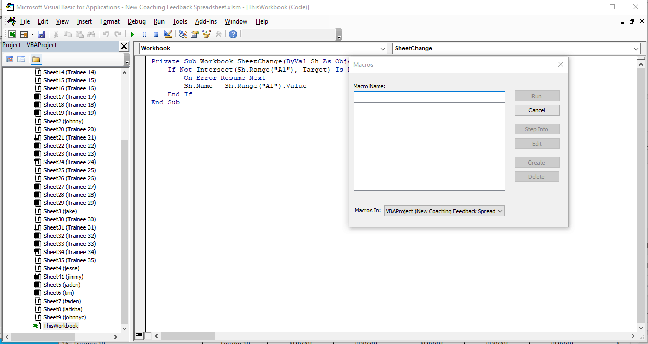 Private Sub Workbook_SheetChange(ByVal Sh As Object, ByVal Target As Range)