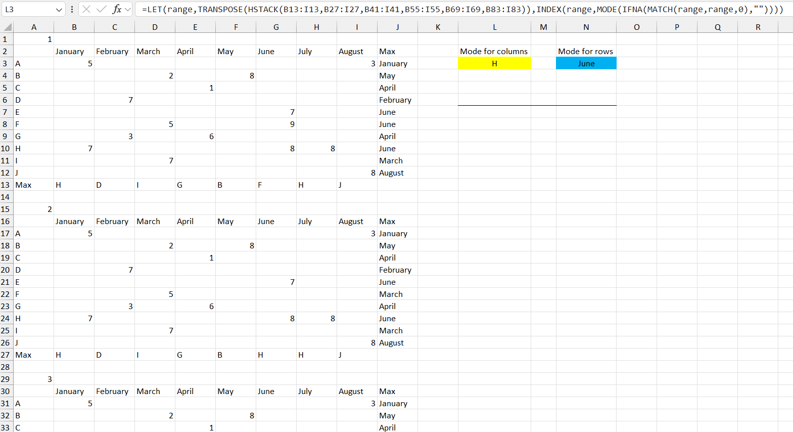 For the row mode shown in N3 in the screenshot use this formula:
