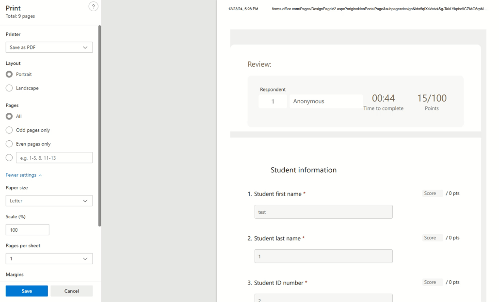 I did notice this phenomenon, and I found that currently Forms can't print responses to responses directly, but instead needs to print through the browser's print function, which I think is the main reason for the poor print results. The only thing I can set in my test so far is the paper size, but I think it may not be up to expectations for the display.