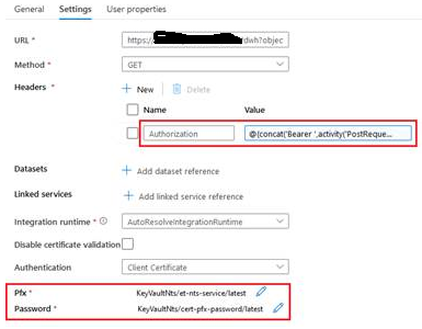 To enter the certificate, I need to use a HTTP Linked Service. So I set that up:
