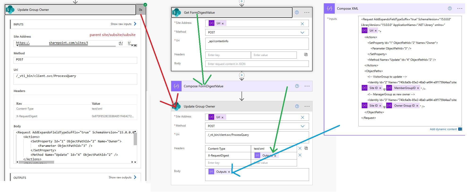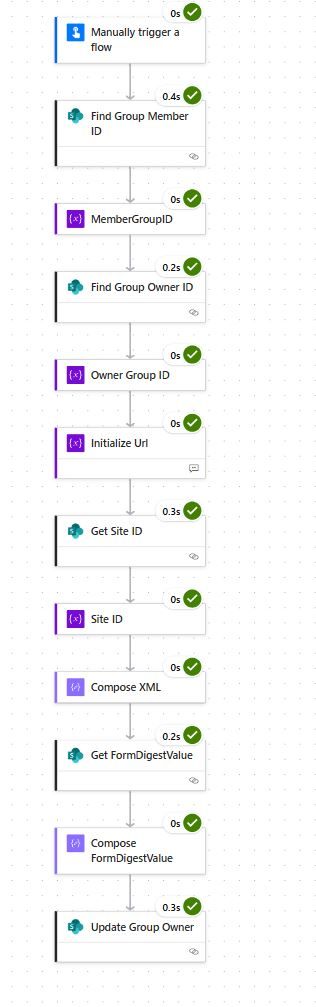 - What response are you receiving from the Update Group Owner step? Is it a success code or an error?