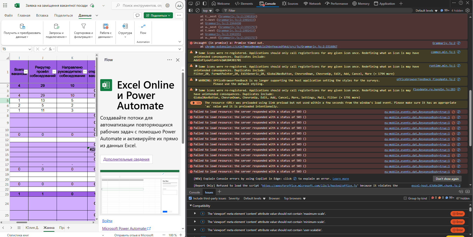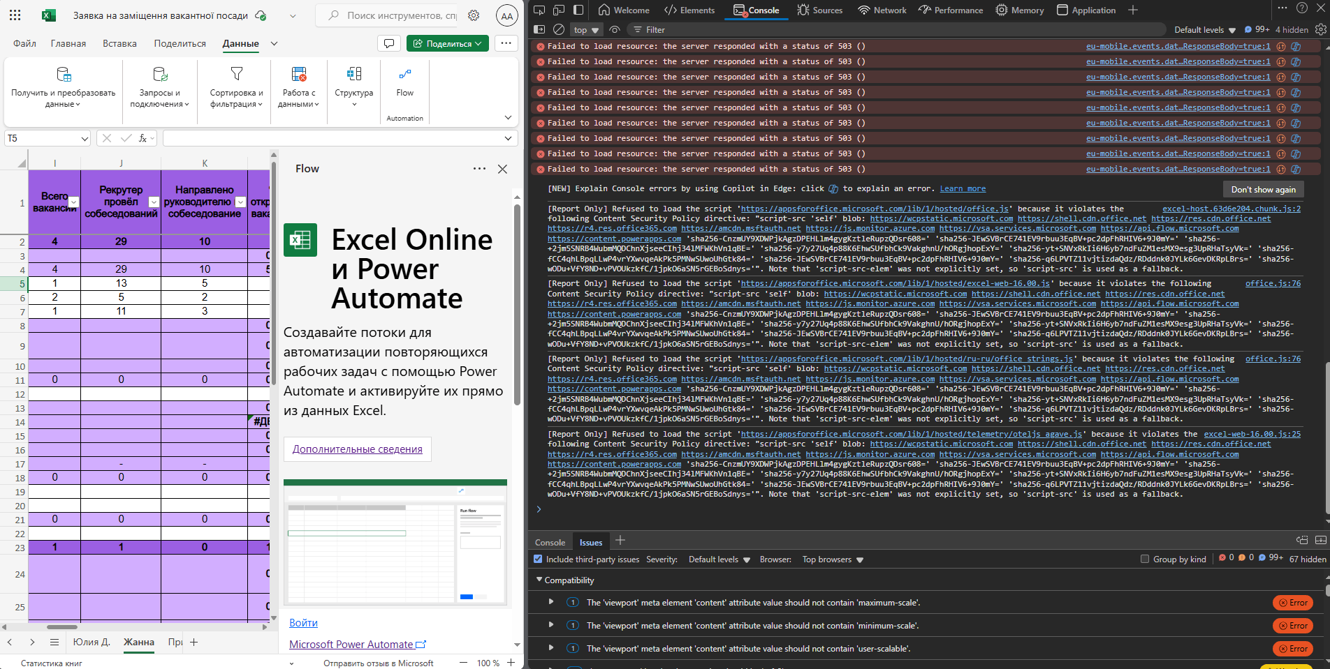 - Re-add the add-in: In Excel Online, go to Insert -> Add-ins -> Store, search for “Power Automate,” and add it. If already added, remove it, sign out, and re-add.