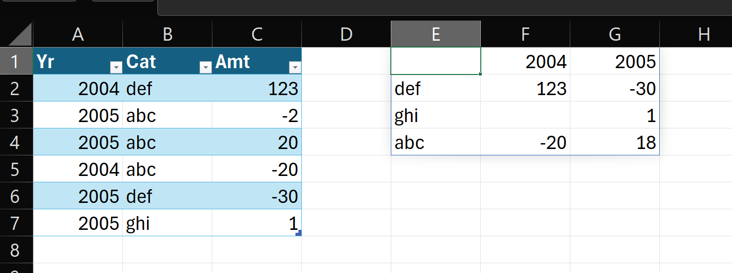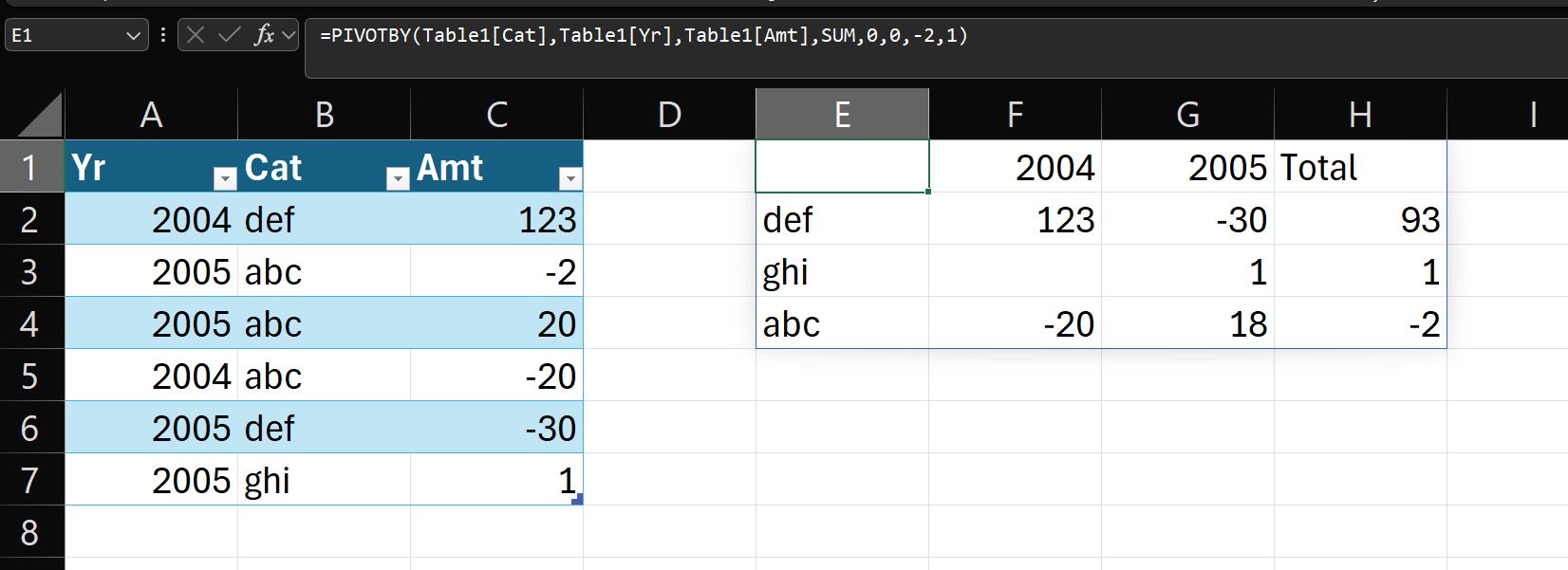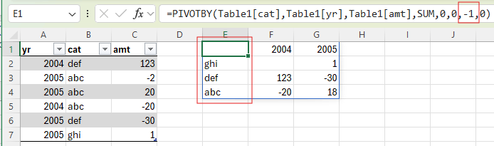 I've reduced a much more complex real-world problem to this simple testcase. My objective is to sort by most recent year SUM ascending (most negative to most positive):