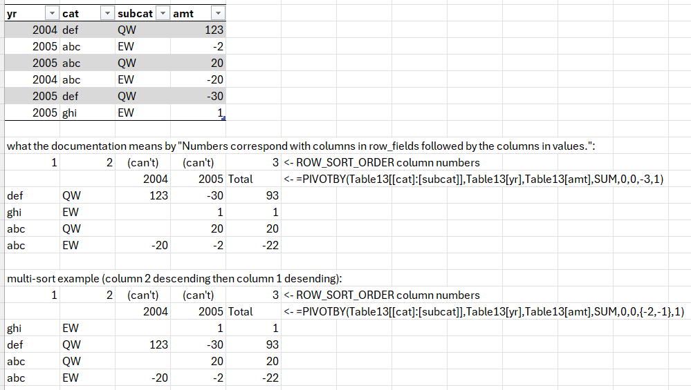 I must be missing something painfully obvious here, but ROW_SORT_ORDER does not seem to work the way I need it to. Is there another way? Or what is it I'm missing?