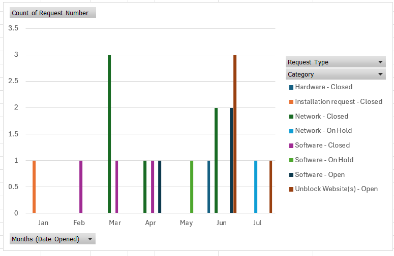 Regarding to your request, in order to present the ticket data in a bar chart in Excel, I would recommend trying the following steps: