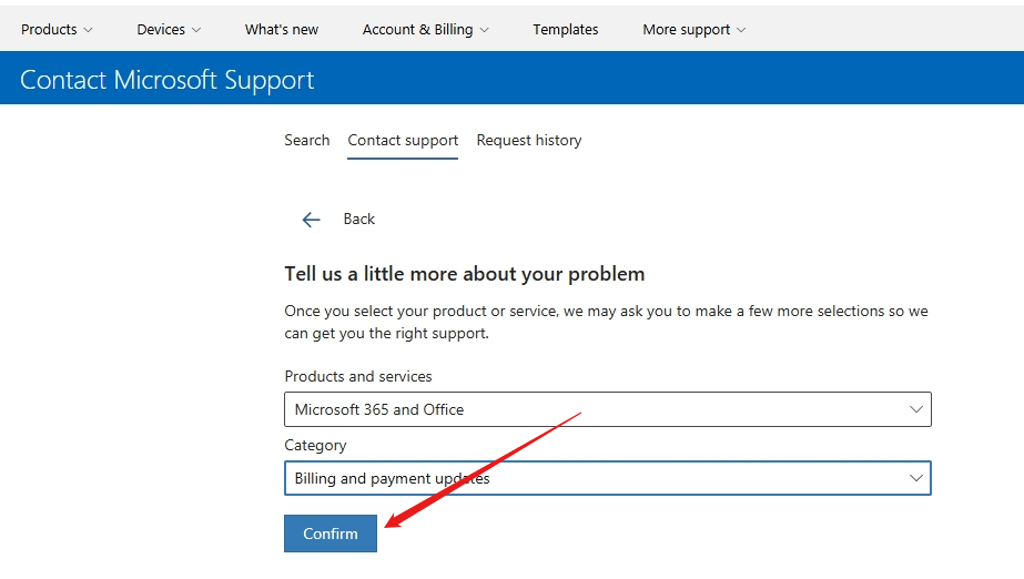 - Online Support Chat: Visit https://support.microsoft.com/contactus , select the topic "Billing/Subscription", and provide details.