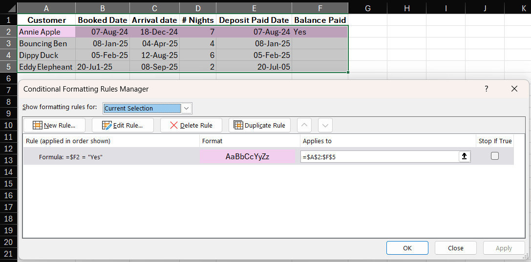 Hi, how to I get the format into the full row A2 to F2 please. I have tried removing the absolutes but excel just puts them back in which is going to be a problem when I copy the formula into the next rows? Please can you help?