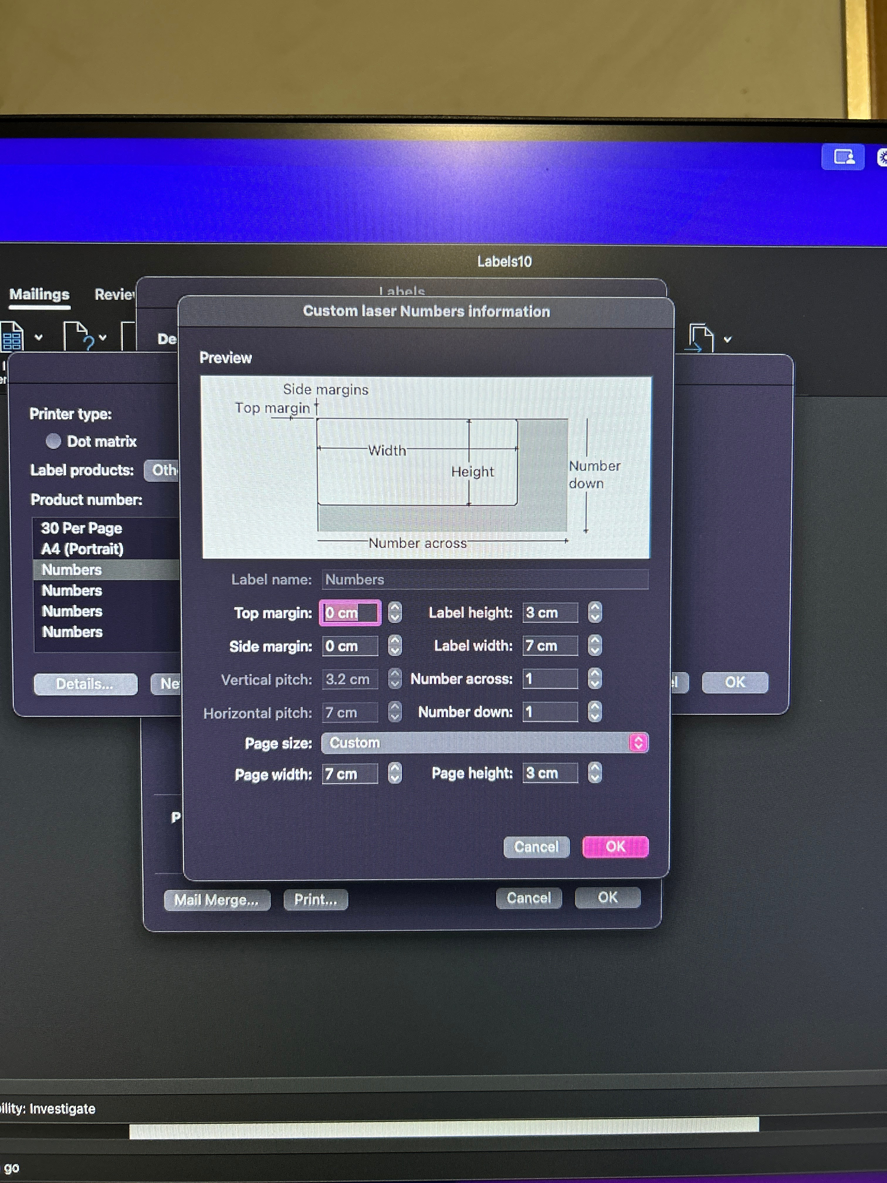 - Choose the appropriate label Product Number, OK