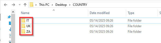 Set objFolders = objFSO.GetFolder("C:\Users\admin\Desktop\COUNTRY\")