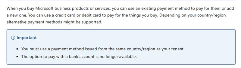 - You can also refer to the following this articles : Manage payment methods for Microsoft business accounts