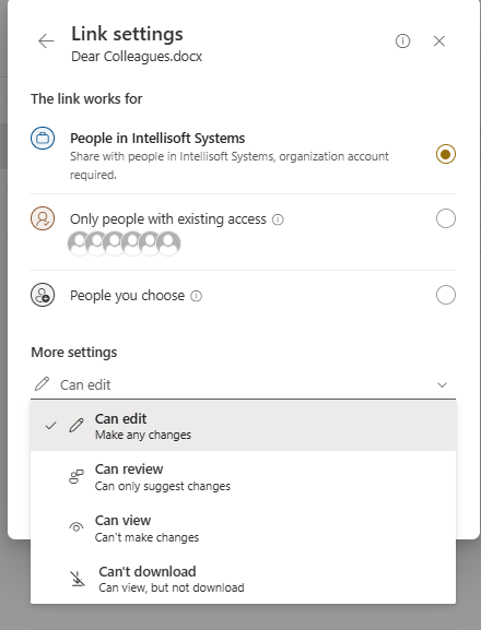 Based on the image you provided, it appears that the 'Anyone with the link' sharing option is unavailable due to your organization's policies. Typically, this feature allows for external sharing with additional security measures, such as setting a password. You may want to consult your IT administrator to explore alternative sharing options permitted by your organization.