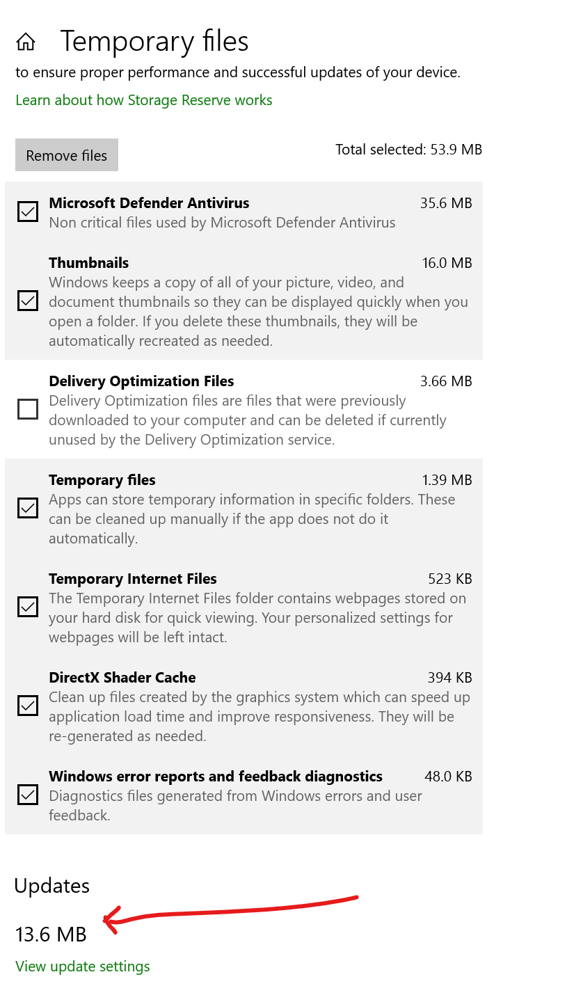 - If Windows Update Cleanup shows there, check it and click Remove files.