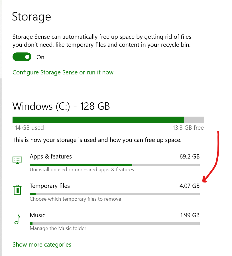 - Click Temporary files.