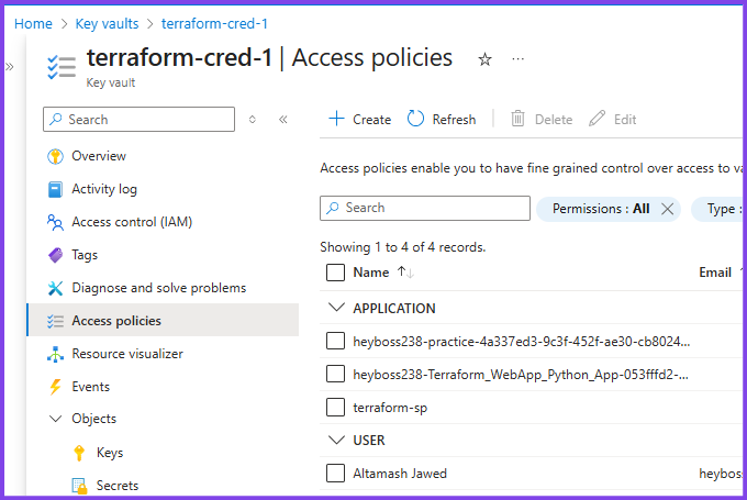 - If the Access model is set to "Azure role-based access control": The Key Vault ignores the access policies. Grant the Service Principal permissions using Azure RBAC roles (e.g., "Key Vault Secrets Officer") at the Key Vault scope.