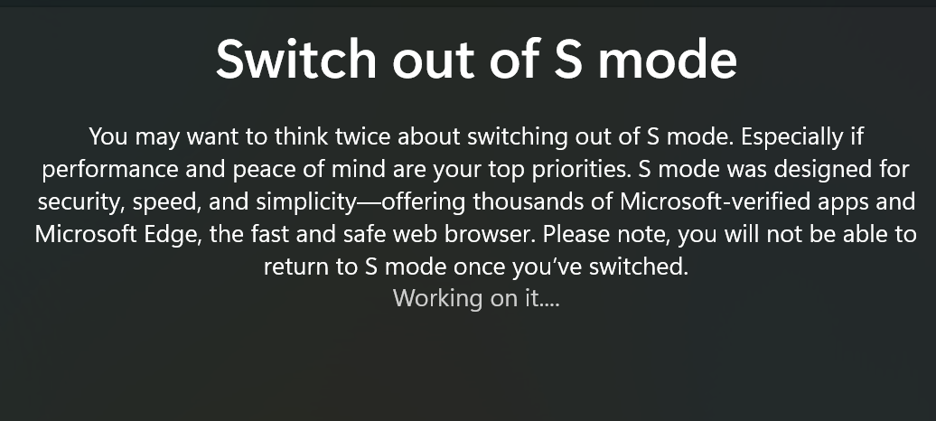 After that, please check the support article in the link below on How to Switch out of S mode.