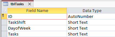 Your table with fields for each day of the week encodes Data (i.e. the name of a Weekday) into the field names. This is most often seen when importing XLSX spreadsheets as tables, but it is also done in error in Access.