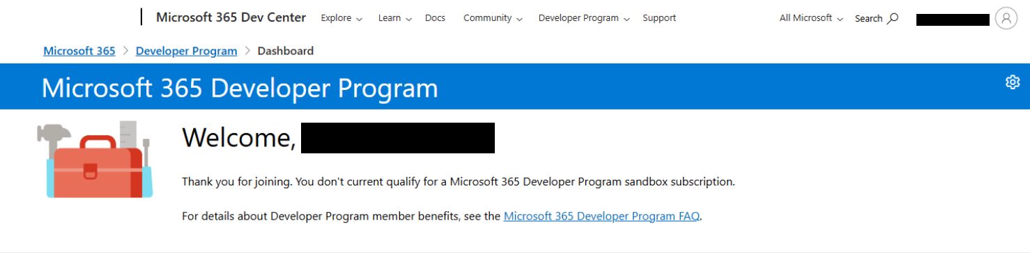 - What account can I use to sign up for the Microsoft 365 Developer Program?