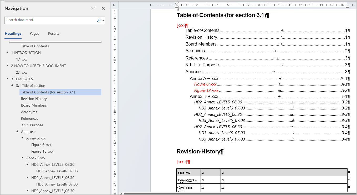 In a section, the main annex headings are numbered with letters (e.g., Annex A (title)).