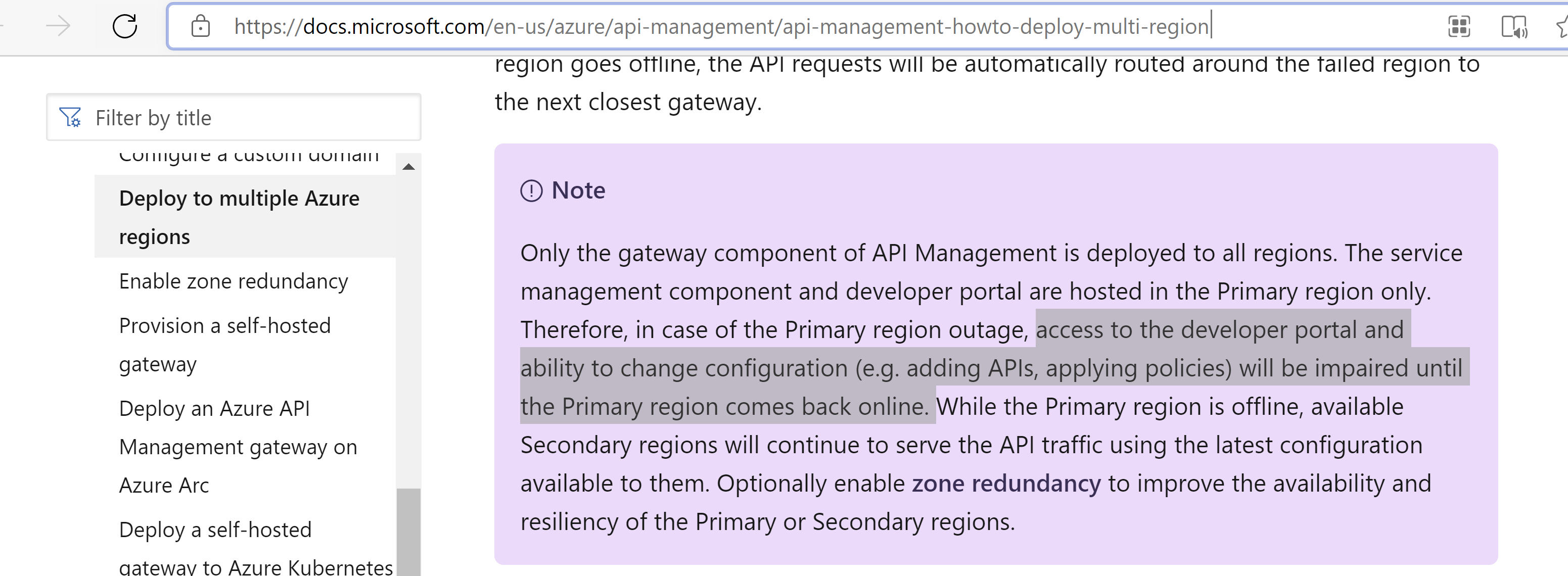 @Gaurav Pandey If the primary region has an issue then unfortunately you will not able to access the developer portal and change the configuration as mentioned in the document.