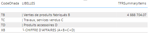 For example, here, CHIFFRE D'AFFAIRES (A+B+C+D) measure [ChiffredAffaire] sould return 4 888 704.07 but in the visual is blank.
