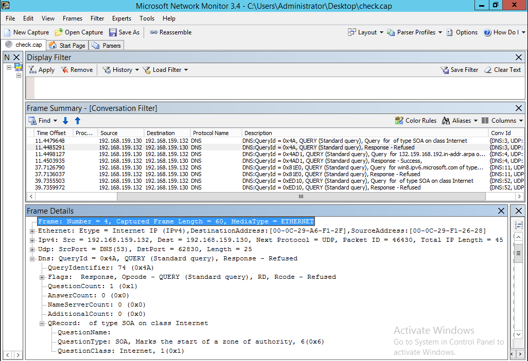 I would like to config local powerDNS (ubuntu) as DNS forwarder in DNS Server. I created two servers and tried configuring each other but it doesn't work. When I added the IPaddress of PowerDNS server, I recorded the packets by network monitor tools. The result was displayed in network monitor tools as: