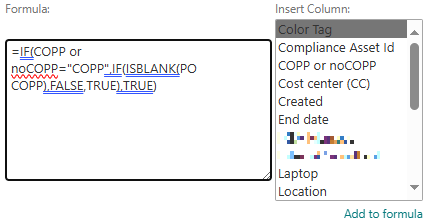 =IF([test2] = "1", IF(ISBLANK([test1]), false, true), true)
