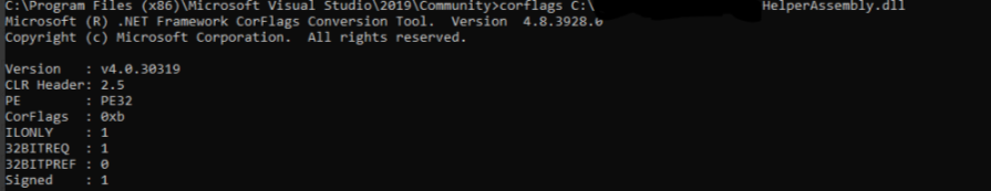 CorFlagsto inspect DLL architecture - Fusion Log Viewer (Fuslogvw.exe) to trace assembly binding issues