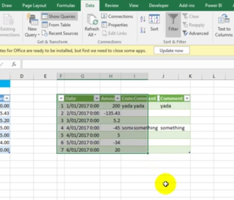 Recently stumbled upon a great article at exceleratorbi dot com dot au. The authors' article details using Power Query to add an new (additional) column to an existing query, self reference the query and Refresh All, sort and filter while keeping the record (row) data relative to the cell in which it was entered.