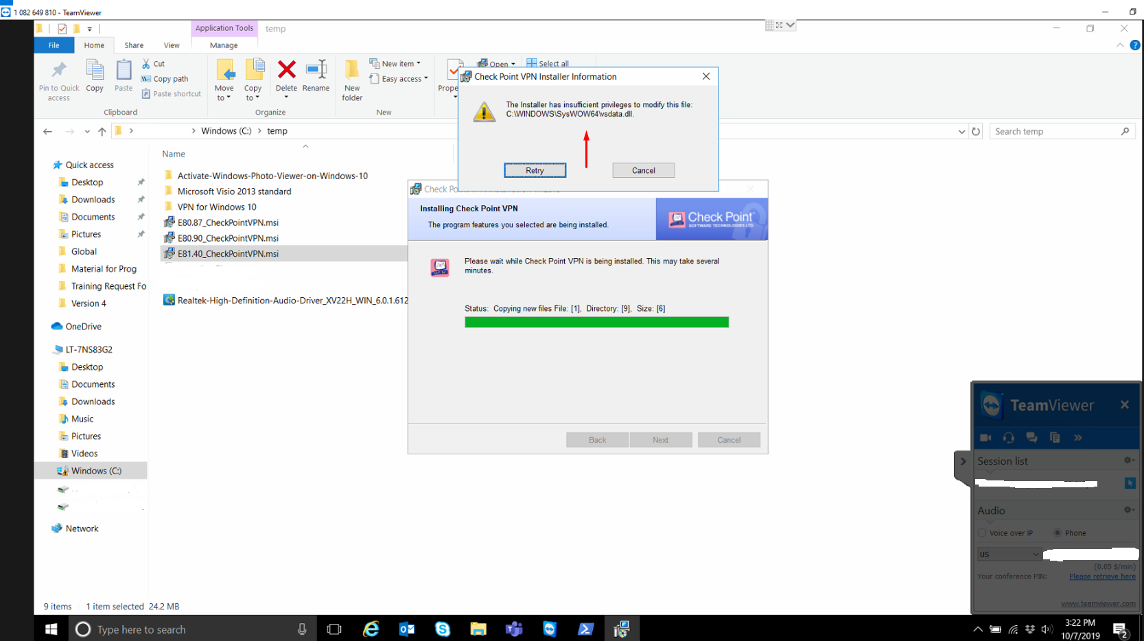 I understand that you are facing issues with installing the Checkpoint VPN application on your PC as it asks for permissions.
