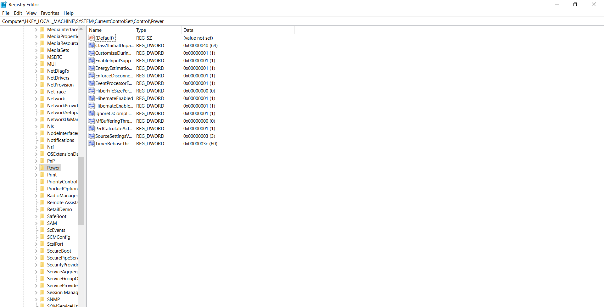 HKEY_LOCAL_MACHINE\SYSTEM\CurrentControlSet\Control\Power