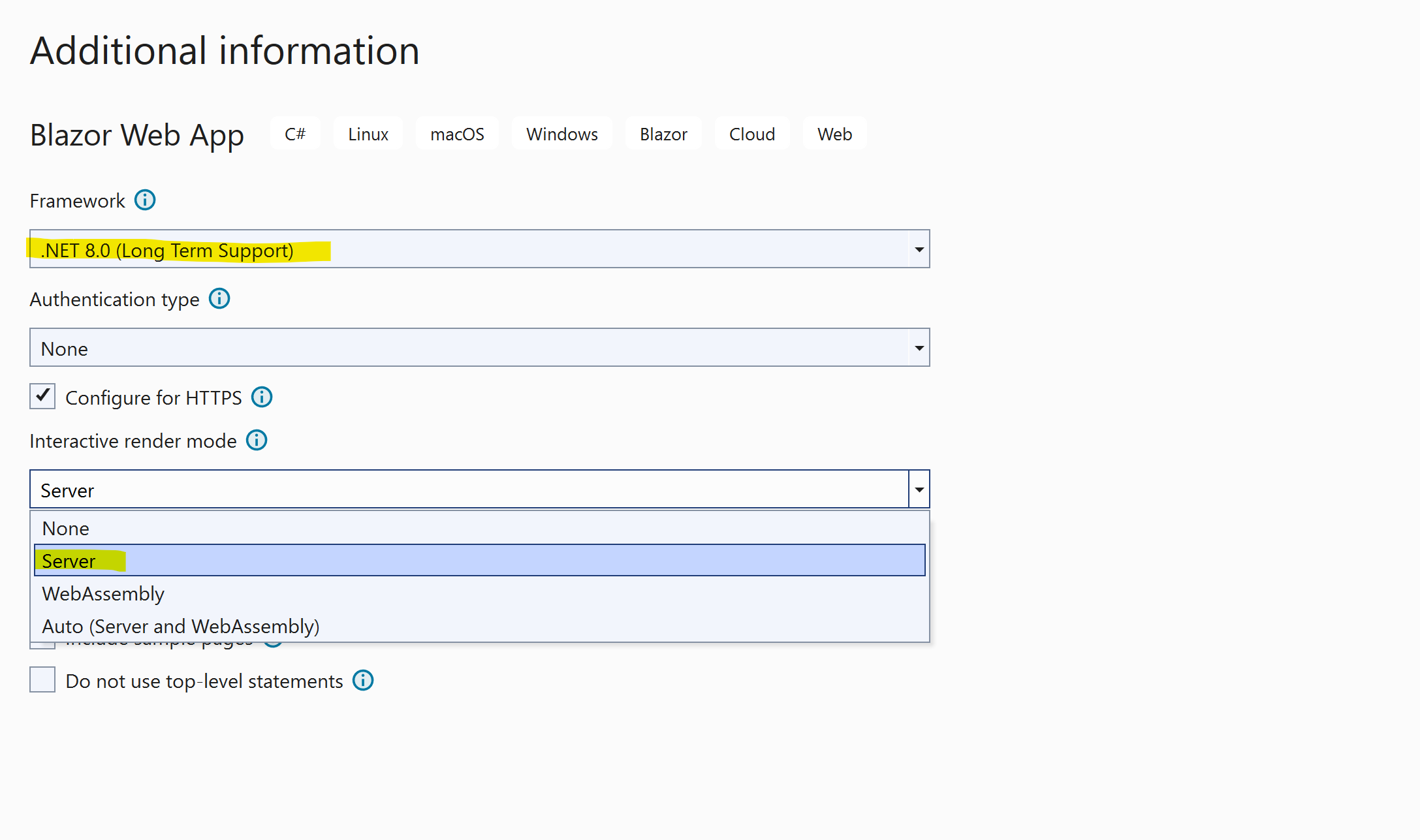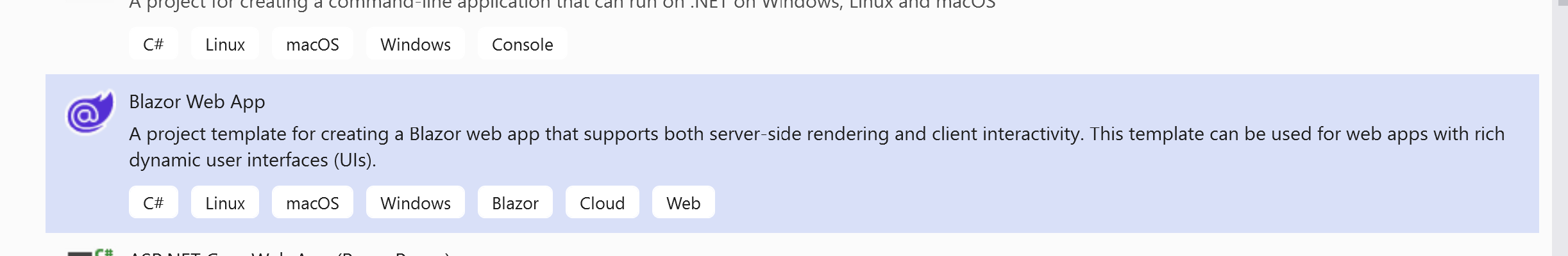 - Create a new Asp.net core Blazor Server application, without select the "Individual Accounts" type.