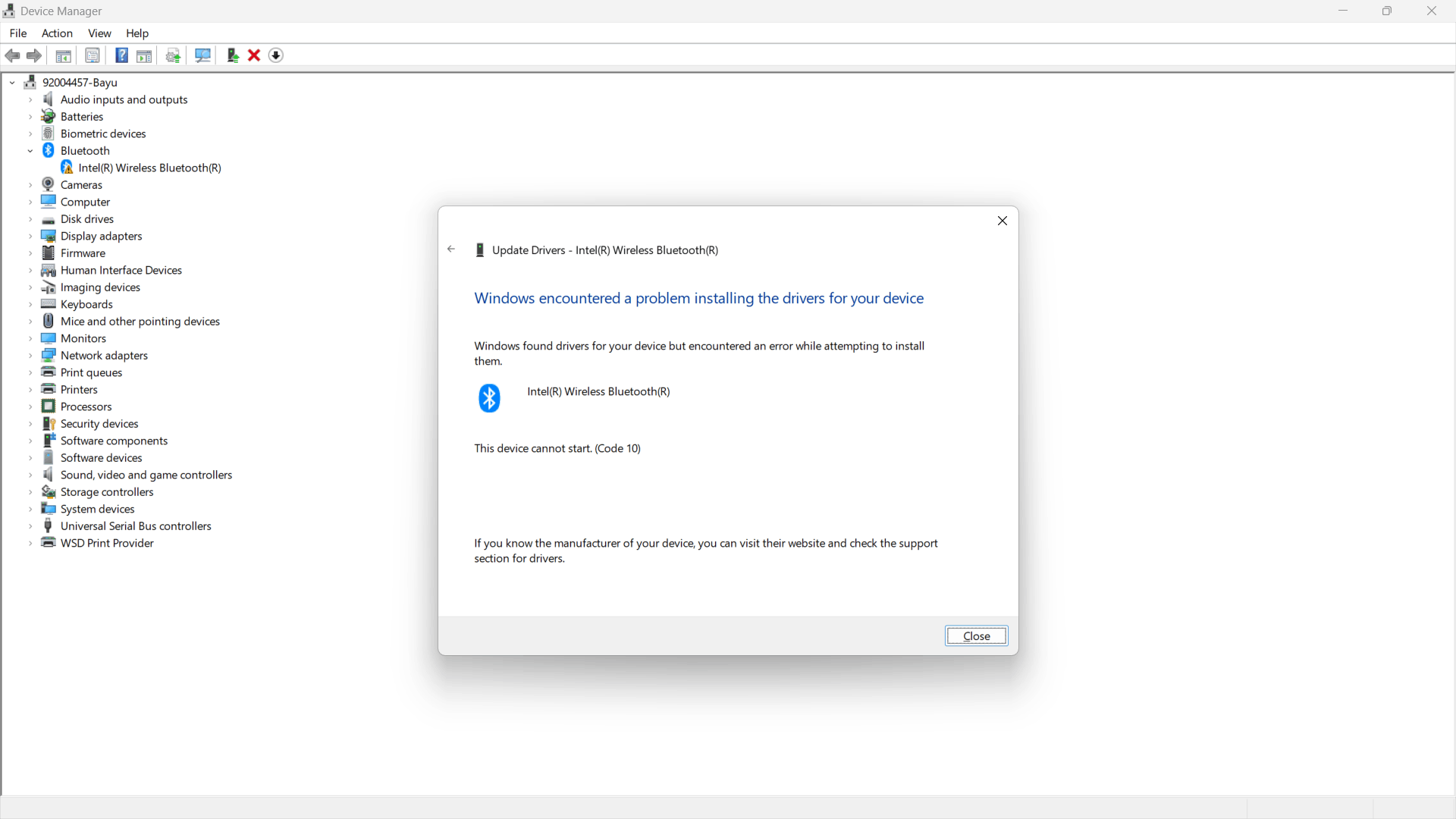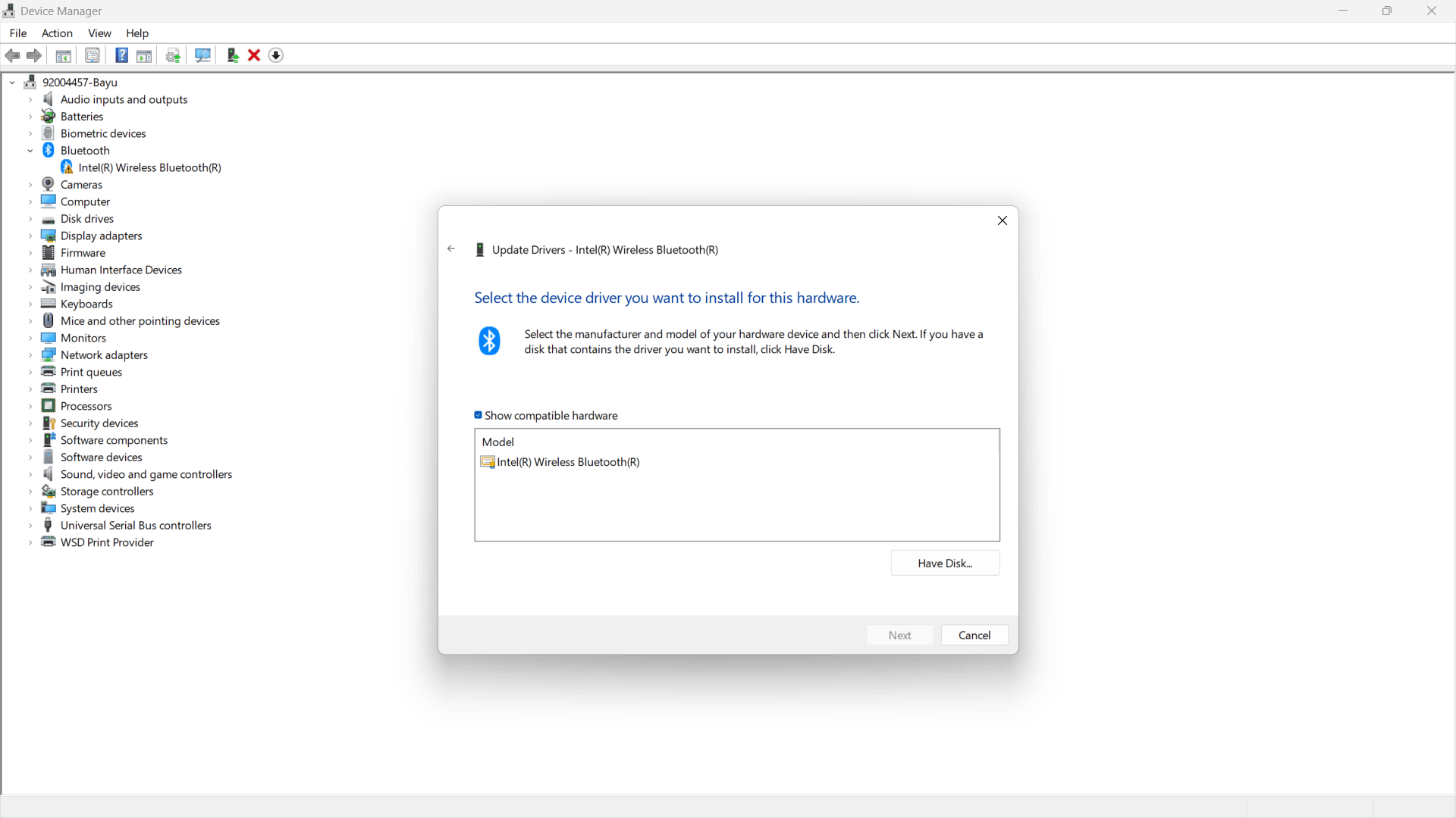 Right click Bluetooth driver