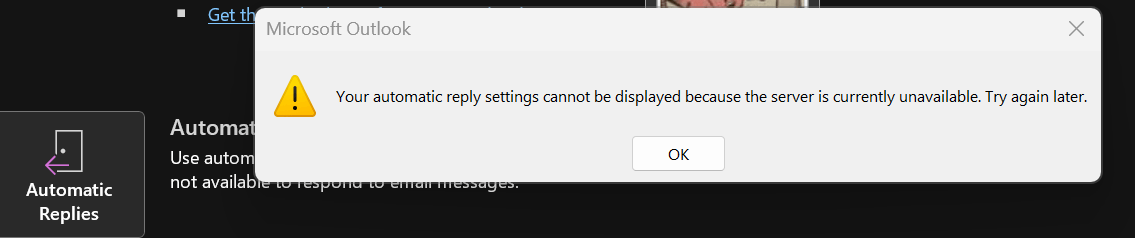 And the third issue is an error message that appears when we try to set up out of office messages.